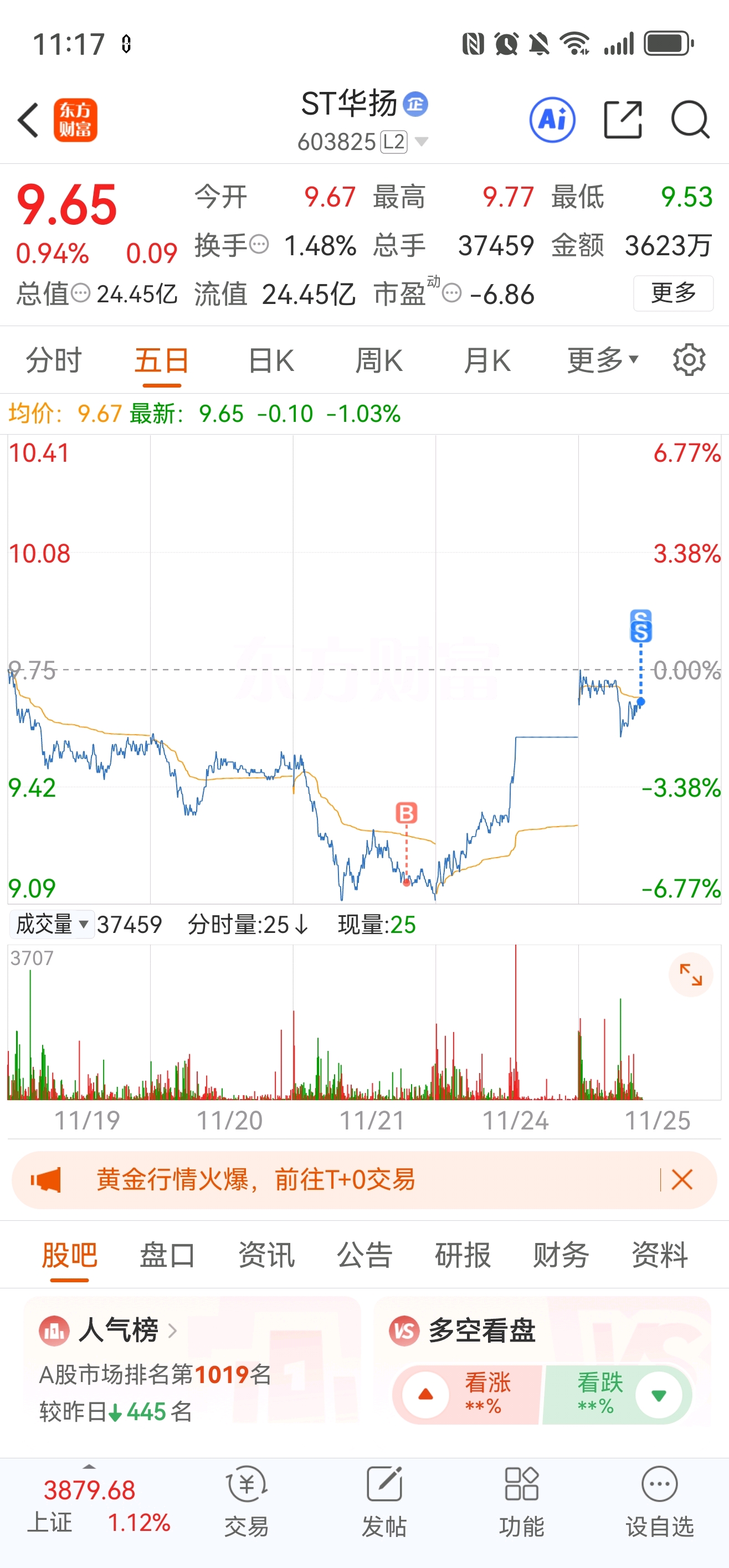 $ST华扬(SH603825)$ 走了 刀哥回不了本,也涨不了多少了