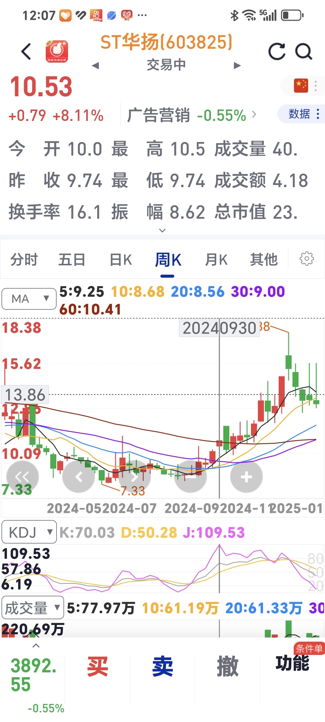 惊人的股东人数。2024年9月末。股东人数3.7万人。股价10元。接着迎来了上涨