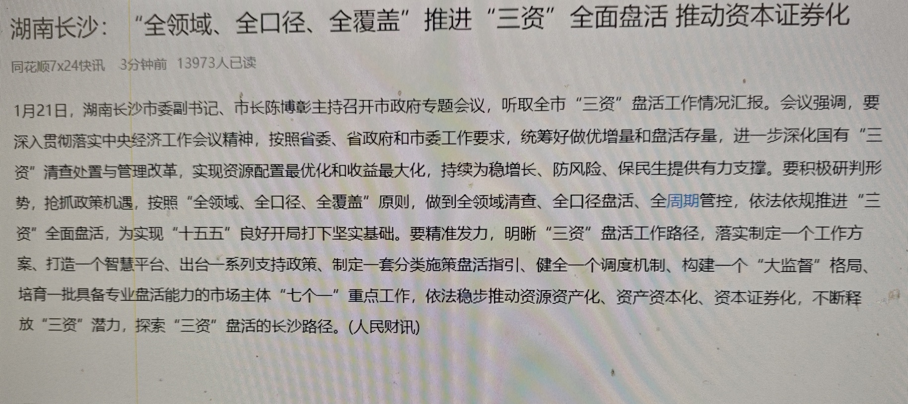湖南长沙:“全领域、全口径、全覆盖”推进“三资”全面盘活推动资本证券化