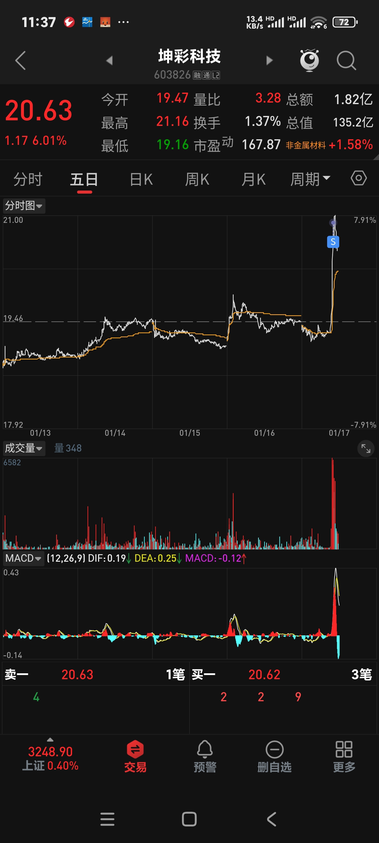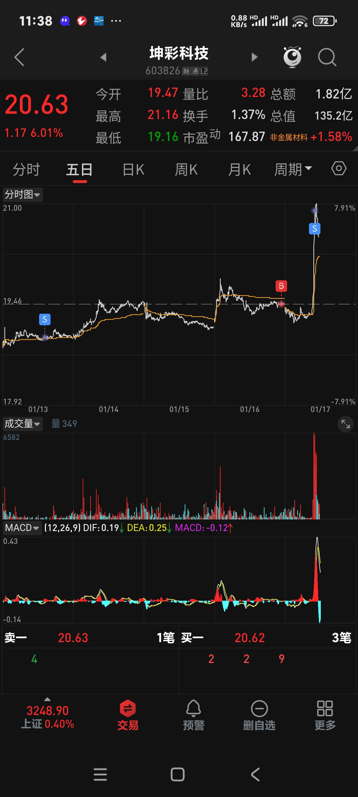 $坤彩科技(SH603826)$ #炒股日记# #复盘记录# #股市怎么看# #实盘记录# #投资干货#