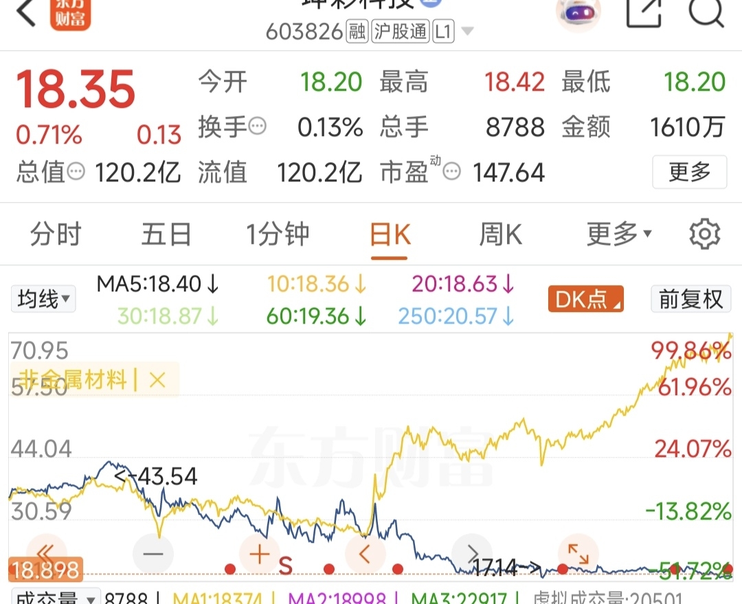 $坤彩科技(SH603826)$ 偏离板块150%,真垃圾