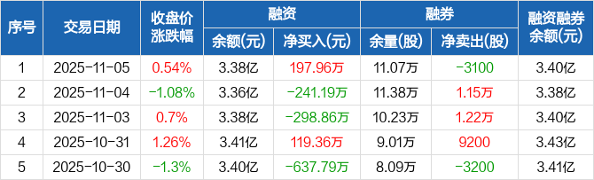 坤彩科技:融资净买入197.96万元,融资余额3.38亿元(11-05)