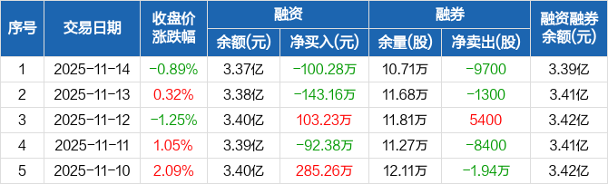 坤彩科技:融资净偿还100.28万元,融资余额3.37亿元(11-14)