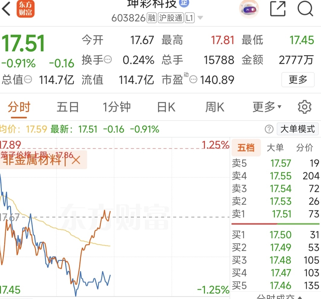 $坤彩科技(SH603826)$ TM的跟跌不跟涨