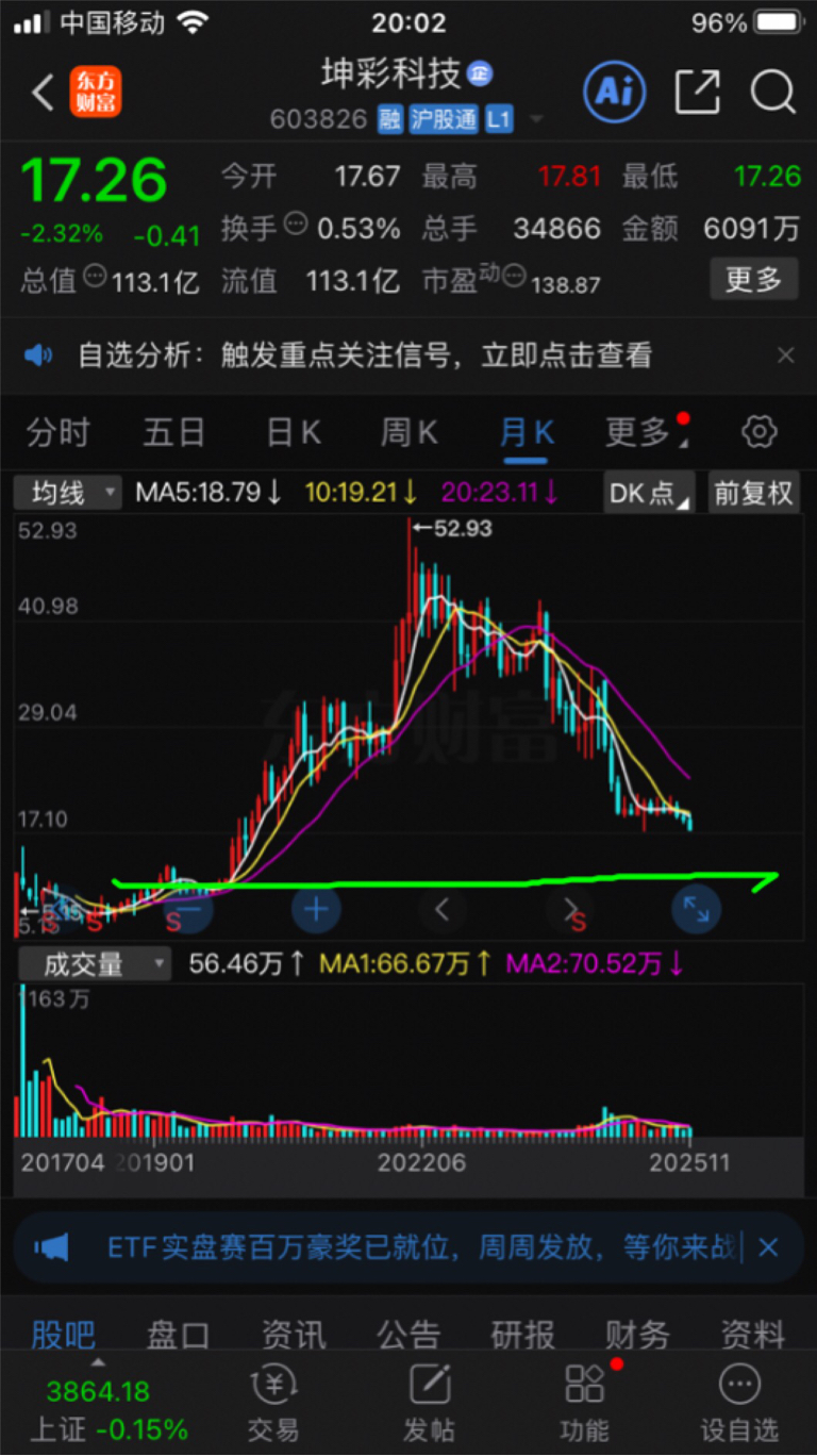$坤彩科技(SH603826)$ 平台支撑在10元附近!合理市值60亿。