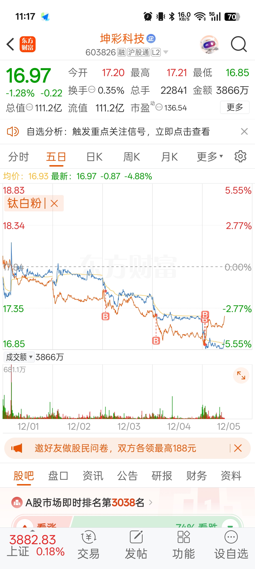 $坤彩科技(SH603826)$ 还让过年不?