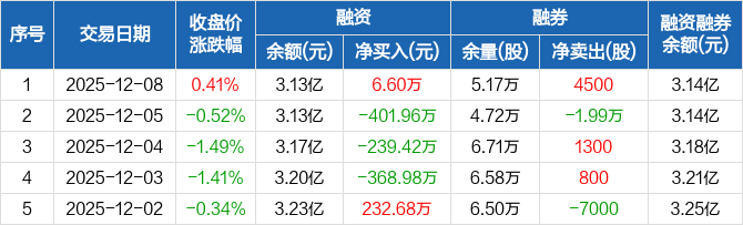 坤彩科技:融资净买入6.6万元,融资余额3.13亿元(12-08)