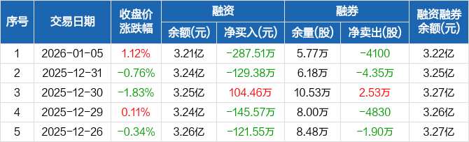 坤彩科技:融资净偿还287.51万元,融资余额3.21亿元(01-05)