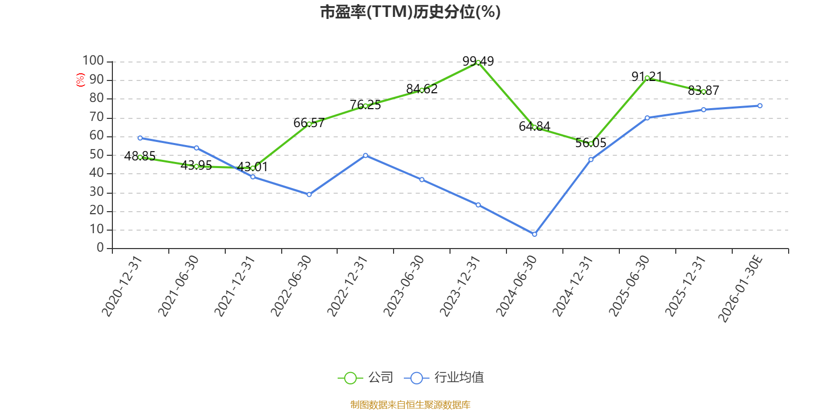以本次披露业绩预告均值计算,公司近年市盈率(TTM)图如下所示: