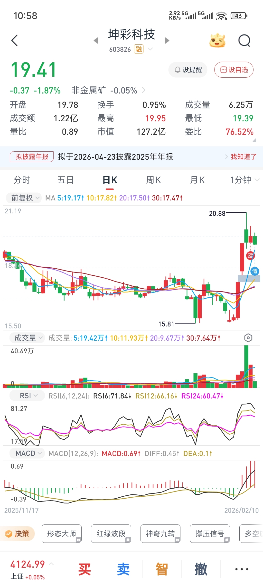 $坤彩科技(SH603826)$ 弱转强失败,走了走了