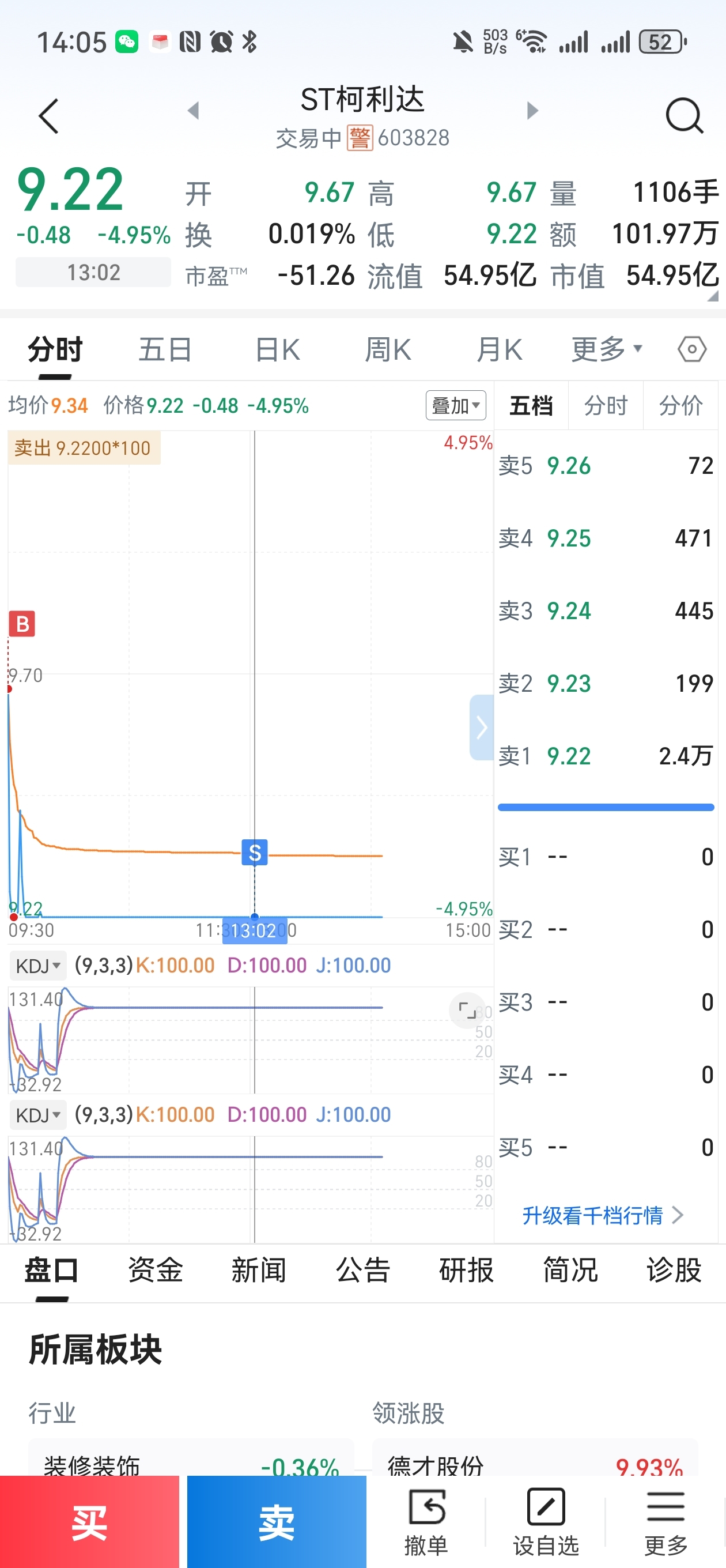 $ST柯利达(SH603828)$ 挂了一手卖掉了,说明啥不用多少吧