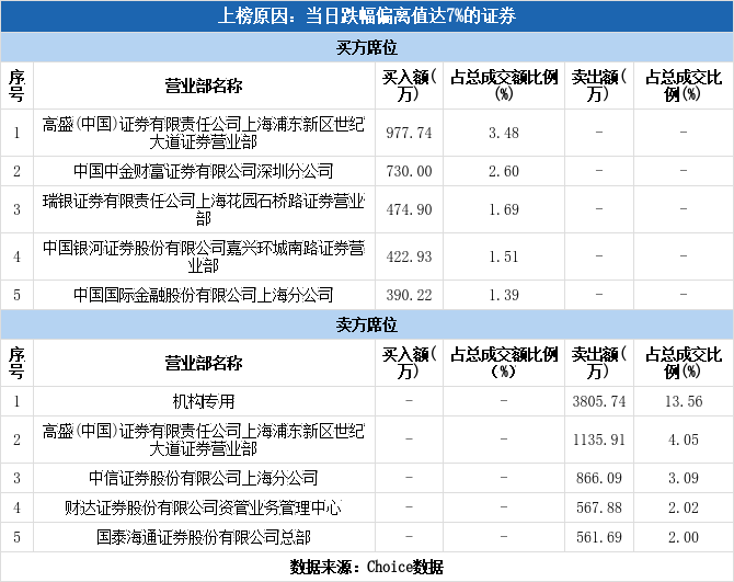 机构现身龙虎榜,洛凯股份跌停(11-10)