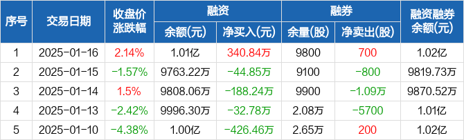 欧派家居:融资净买入340.84万元,融资余额1.01亿元(01-16)