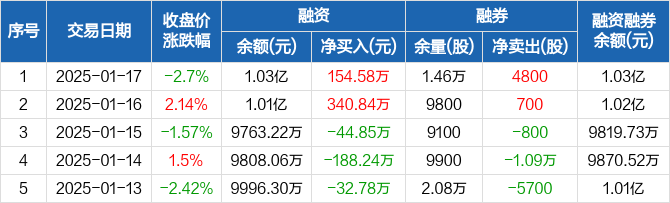 欧派家居:融资净买入154.58万元,融资余额1.03亿元(01-17)