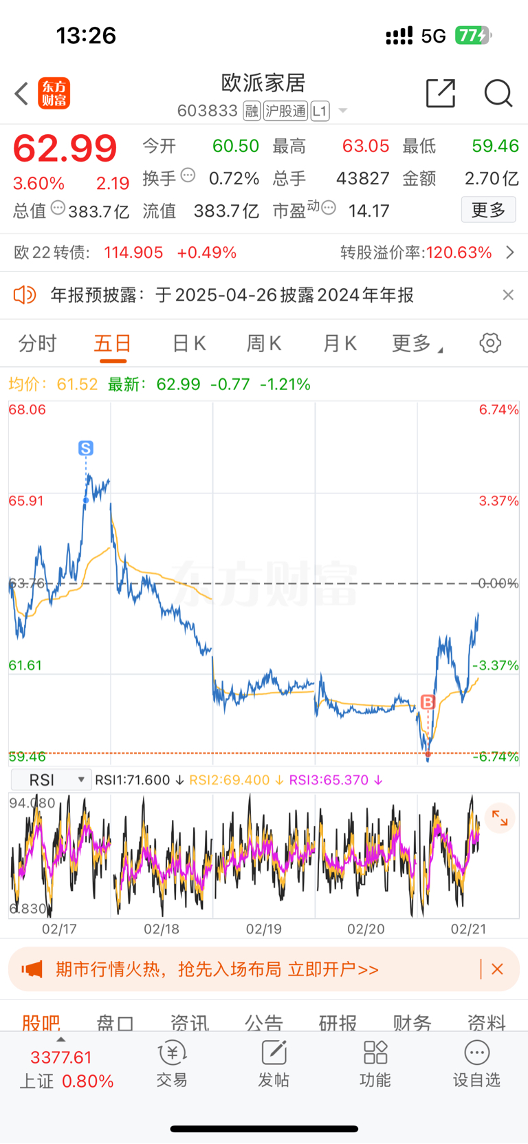 $欧派家居(SH603833)$ 买少了呀