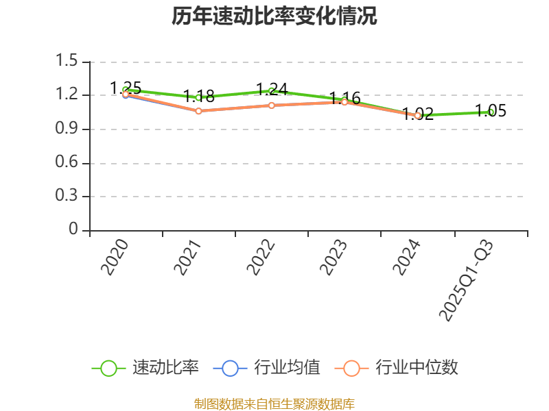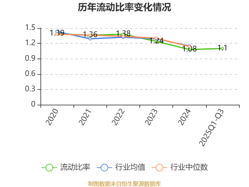 2025年前三季度,公司流动比率为1.1,速动比率为1.05。