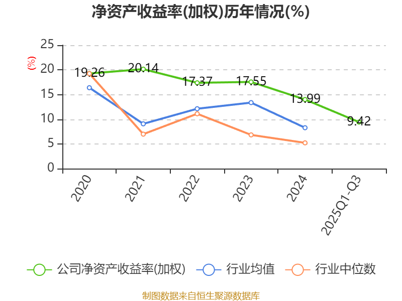 盈利能力方面, 2025年前三季度公司加权平均净资产收益率为9.42%,同比下降1.42个百分点。公司2025年前三季度投入资本回报率为6.06%,较上年同期下降0.23个百分点。