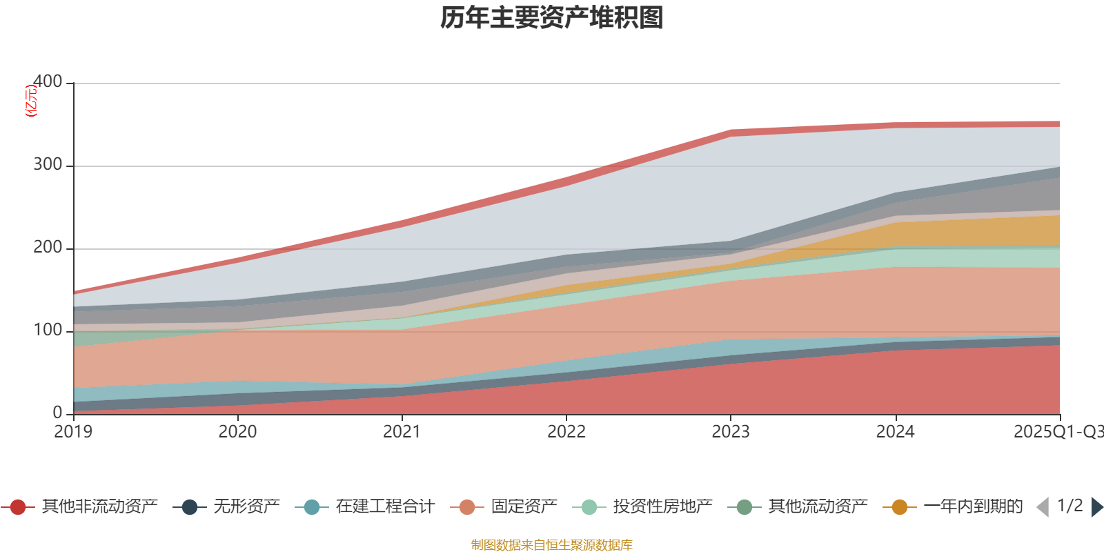 资产重大变化方面,截至2025年三季度末,公司货币资金较上年末减少38.12%,占公司总资产比重下降8.48个百分点;交易性金融资产合计较上年末增加148.9%,占公司总资产比重上升6.6个百分点;一年内到期的非流动资产较上年末增加28.82%,占公司总资产比重上升2.28个百分点;其他非流动资产较上年末增加8.03%,占公司总资产比重上升1.66个百分点。