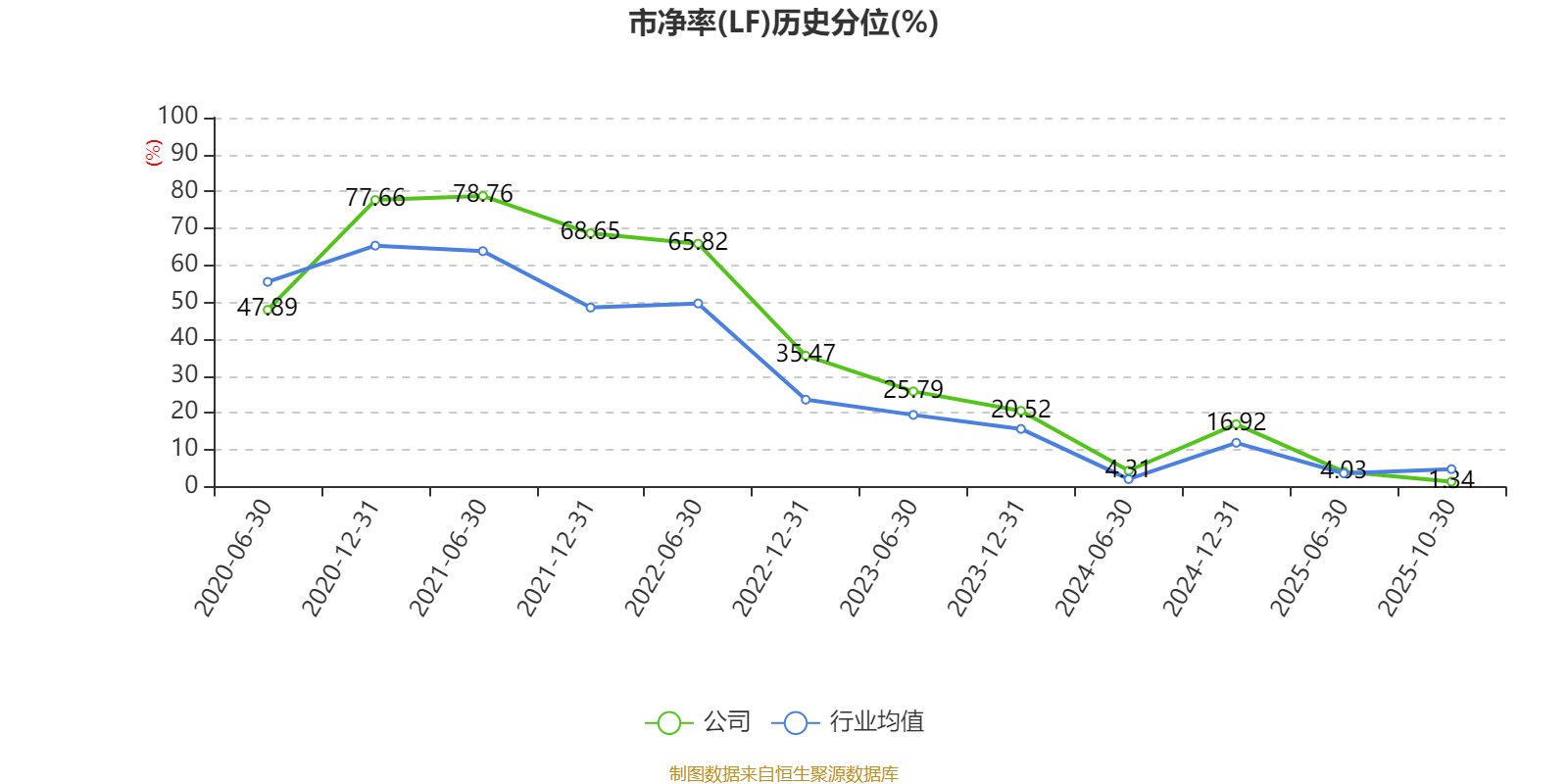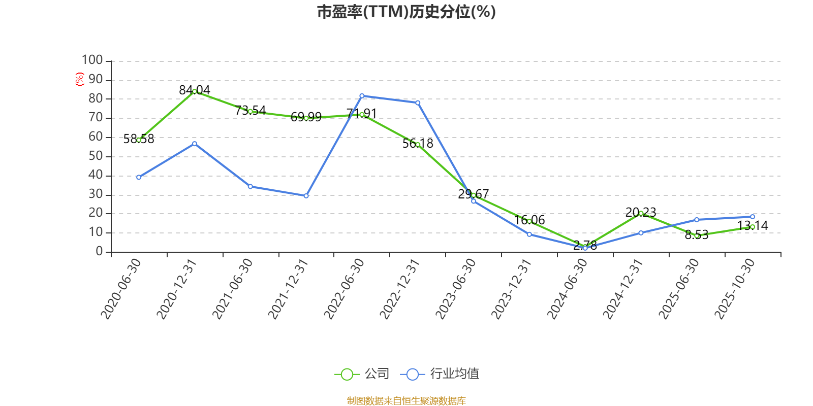 市盈率、市净率为负时,不显示当期分位数,会导致折线图中断。