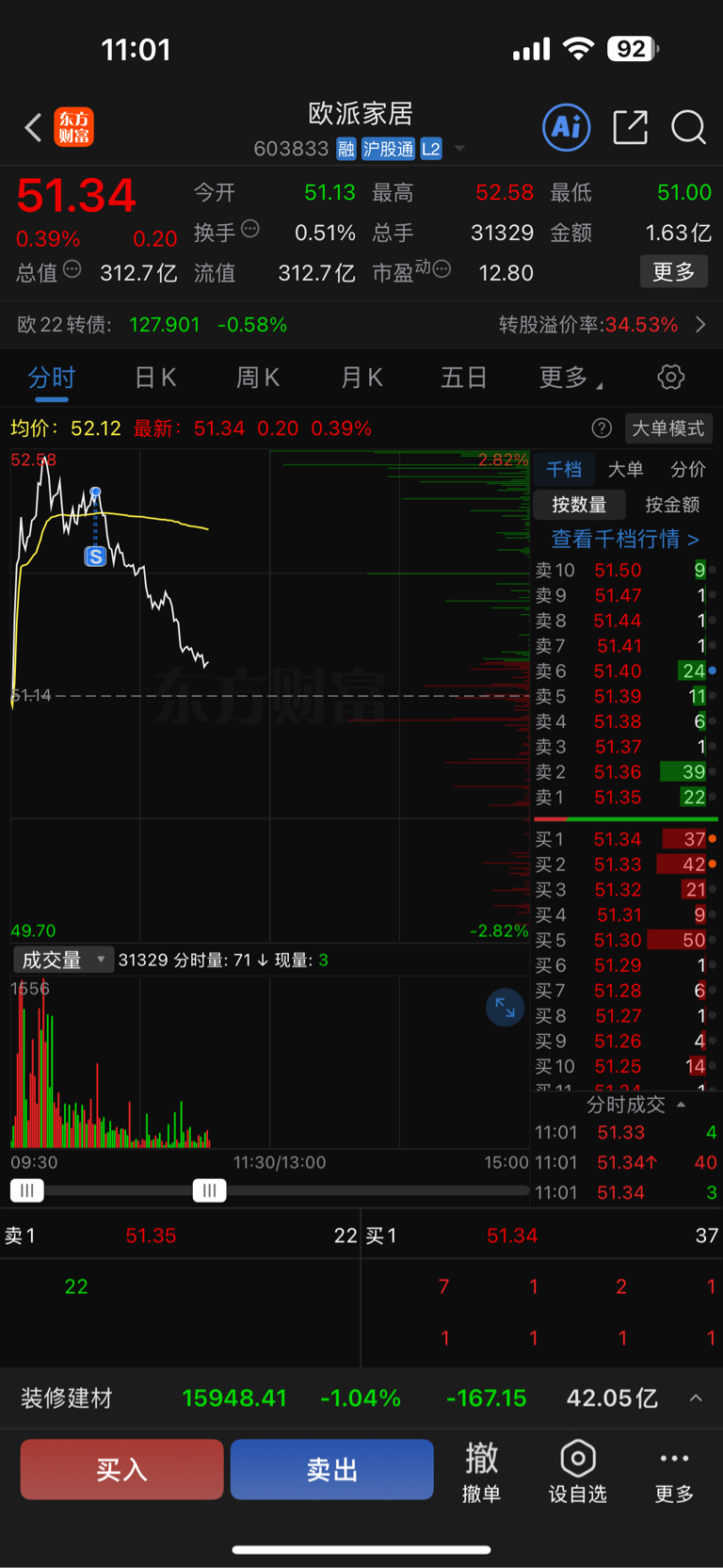 $欧派家居(SH603833)$ 唉,没在高位卖掉,真后悔,犹如了几分钟,后来还是清仓了,