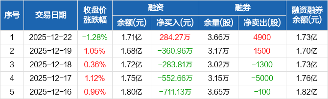 欧派家居:融资净买入284.27万元,融资余额1.71亿元(12-22)