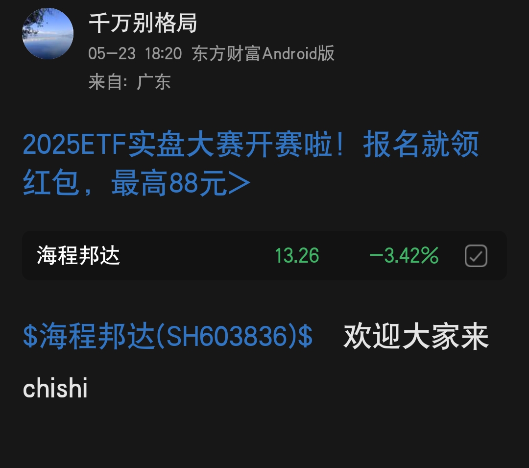 温馨提示: 1.根据《证券法》规定,禁止编造、传播虚假信息或者误导性信息,扰乱证券市场;2.用户在本社区发表的所有资料、言论等仅代表个人观点,与本网站立场无关,不对您构成任何投资建议。用户应基于自己的独立判断,自行决定证券投资并承担相应风险。《东方财富社区管理规定》