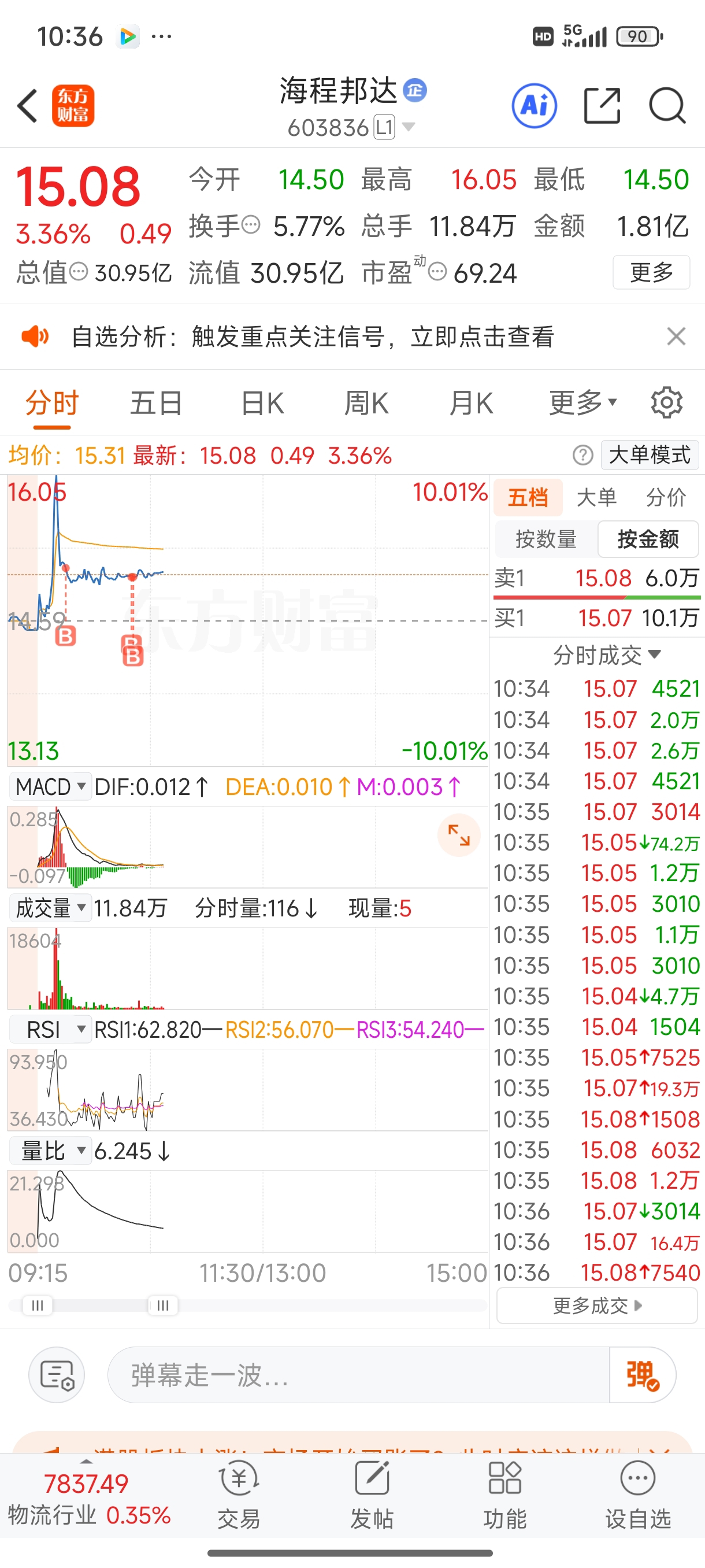 $海程邦达(SH603836)$ 大哥来了,我来救你们来了。这算不算主力试盘,强震洗盘,再起飞?反正就是有主力介入了,要开始起飞的票,可以这样理解吗?