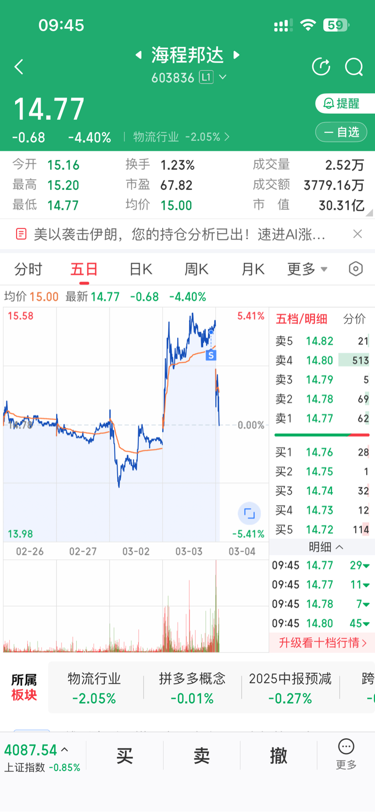 $海程邦达(SH603836)$ 还好昨天跑路了