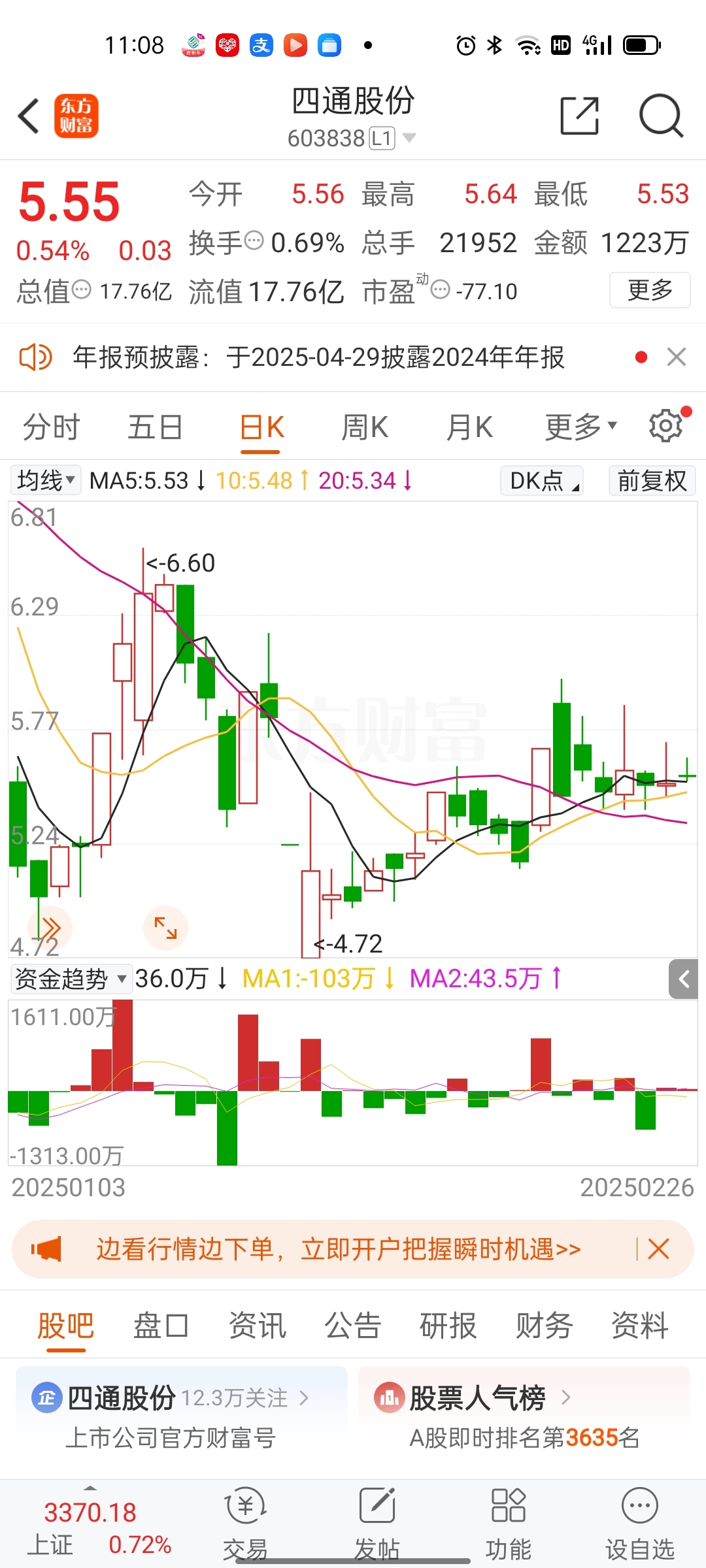 $四通股份(SH603838)$ 主力耐心吸等,反转酝酿中