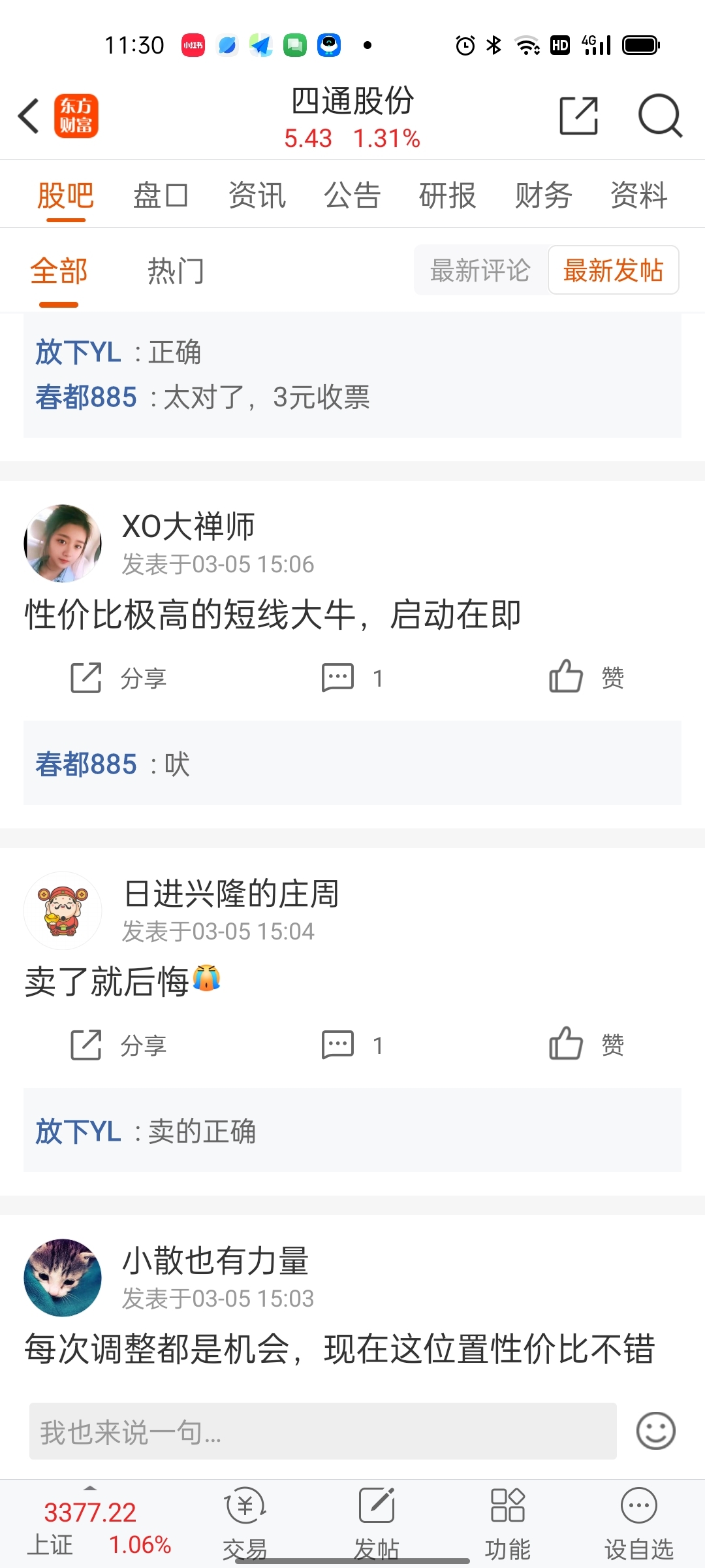 $四通股份(SH603838)$ 记住咋天的贴