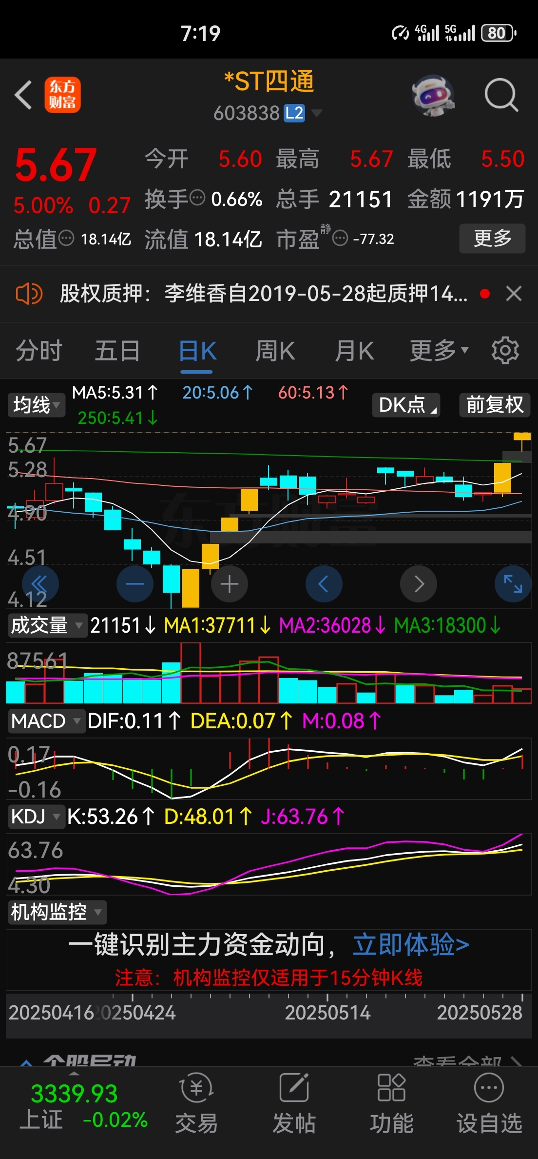 $*ST四通(SH603838)$ 明天应该是一字了!