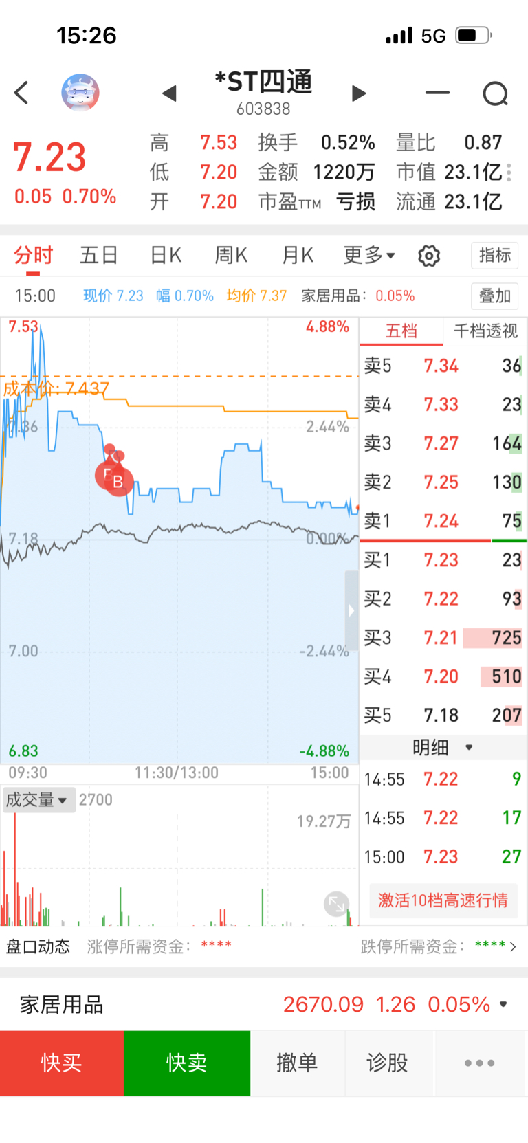 $*ST四通(SH603838)$ 摘帽前只加不减,兄弟们跌下来就是机会