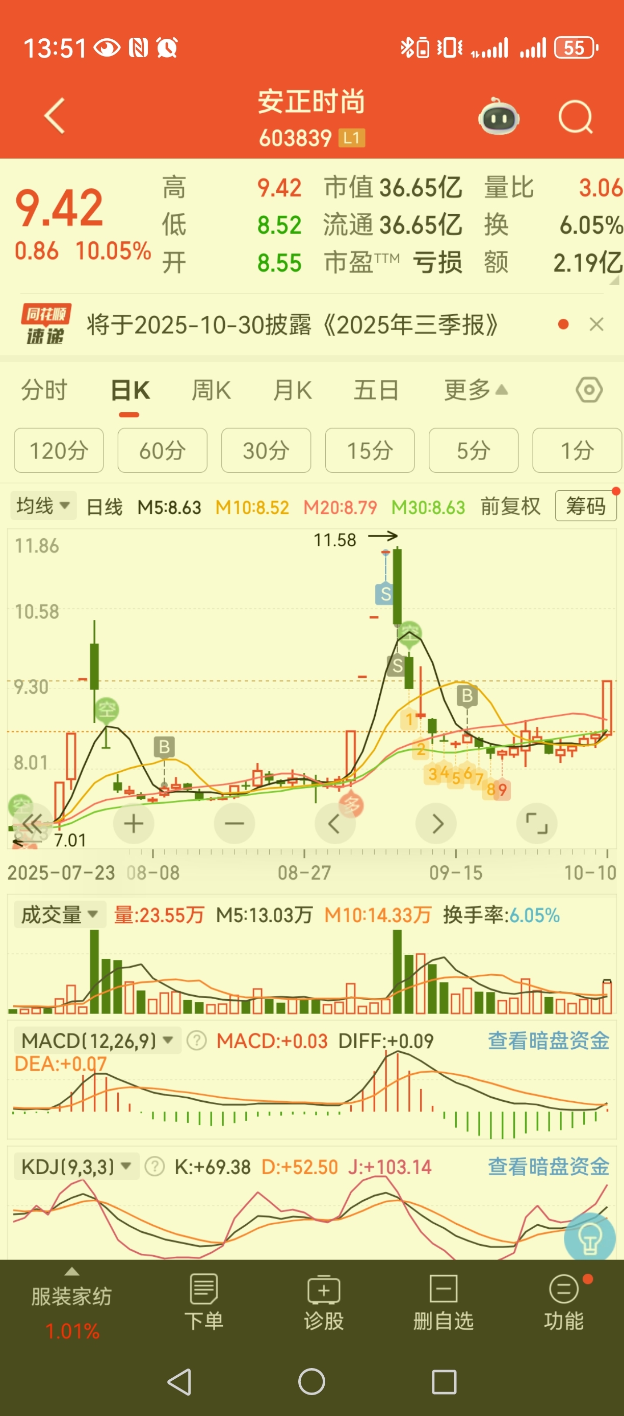 $安正时尚(SH603839)$ 三板组跟着吃爽了