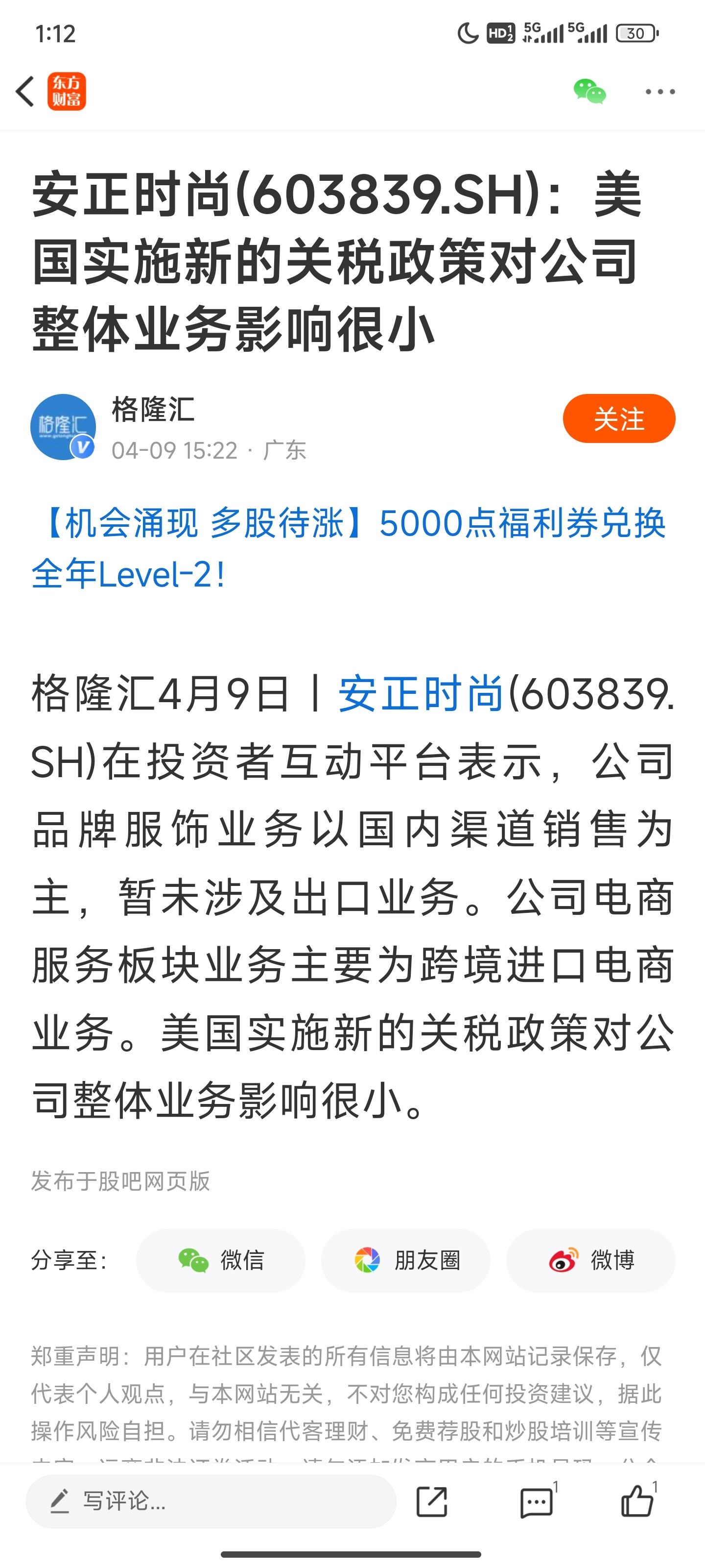 $安正时尚(SH603839)$ 不多说啥,给我稳住