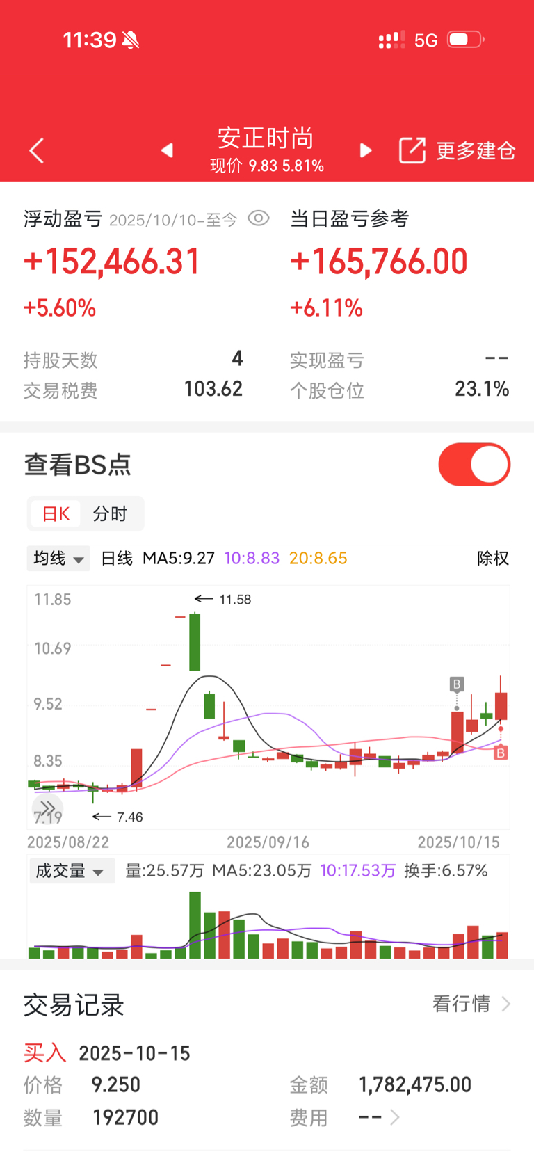$安正时尚(SH603839)$ 前期公开操作,早盘集合竞价推荐买入的安正时尚603839 上涨还不错,可以继续买入。