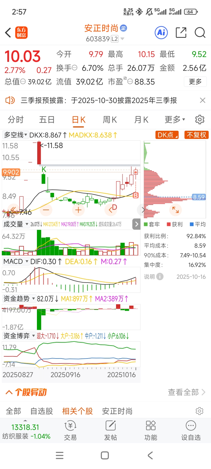 $安正时尚(SH603839)$ 上影线加下影线形成揉搓线,这不是洗盘结束的信号吗
