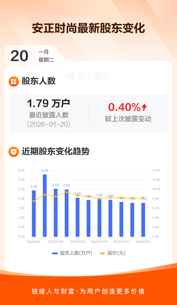 安正时尚:截至1月20日最新股东户数1.79万户,较上期增加0.40%