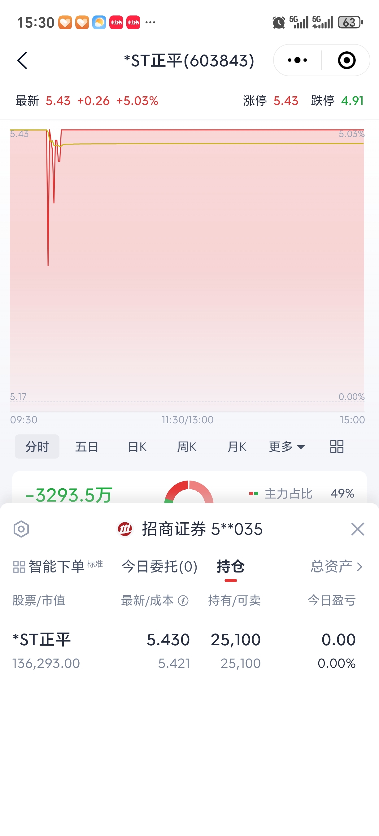$*ST正平(SH603843)$ 25万3年炒的剩这点了,全仓打满,也没钱补仓,生死有命