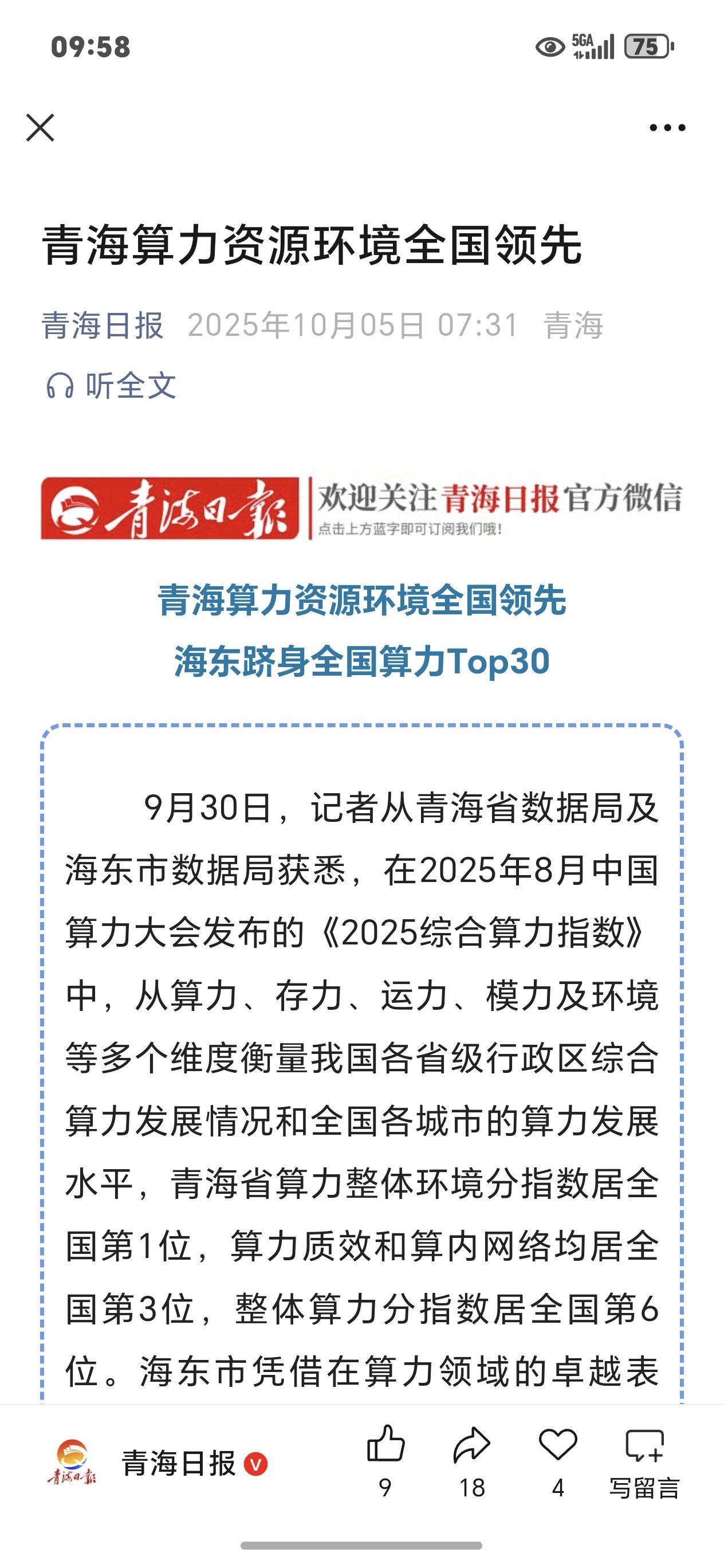 9月30日,记者从青海省数据局及海东市数据局获悉,在2025年8月中国算力大会发