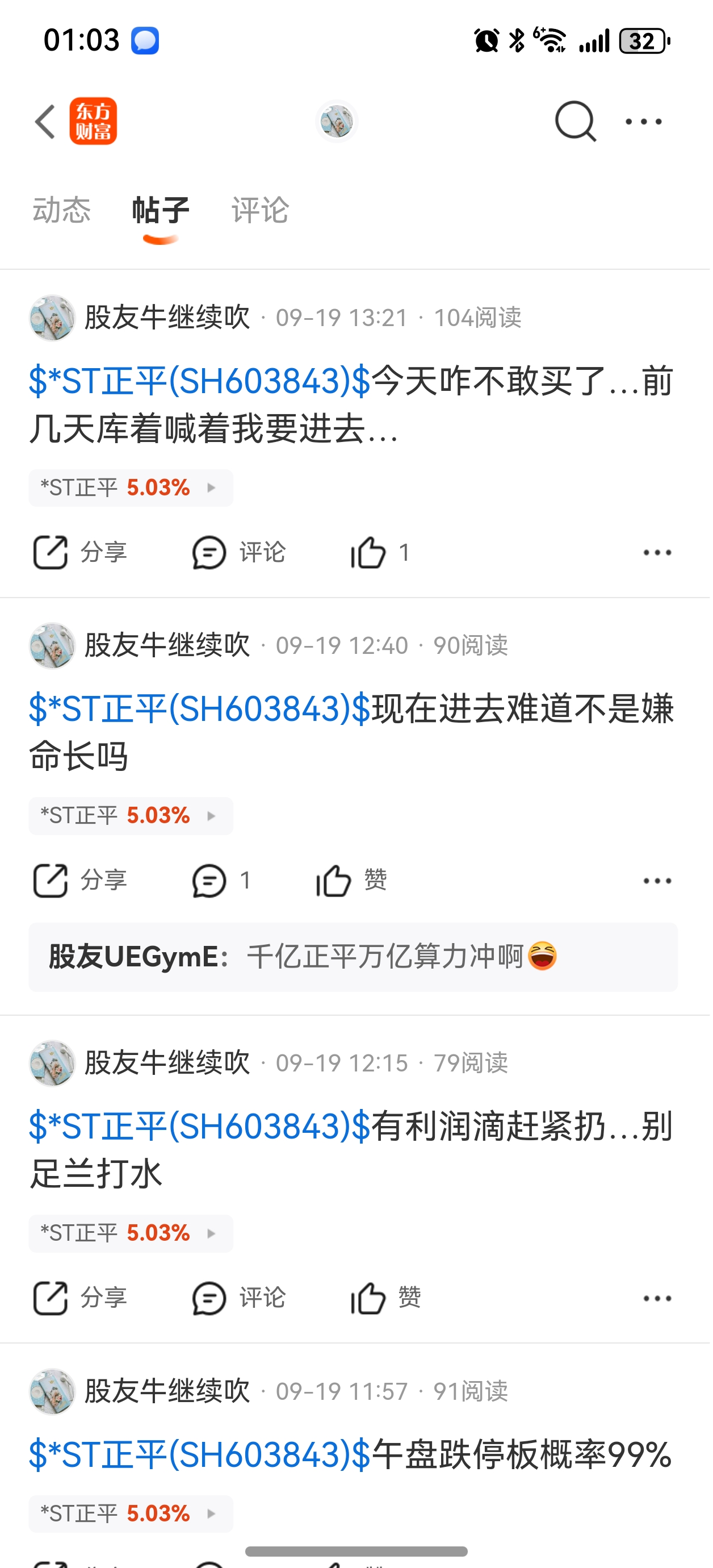 $*ST正平(SH603843)$ 卖飞要承认,不要一天天苟叫,自己不坚定不要怨天尤人。你以前也是吧里的多头,可惜19号那天放量吓跑了。你的认知决定了你的收获。