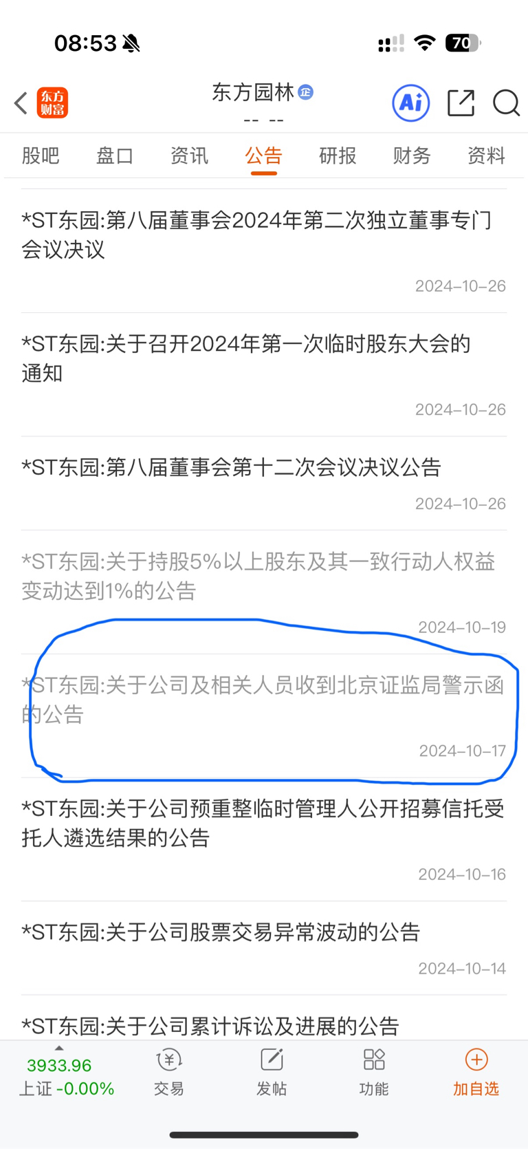 st东园是去年10月17日收到警示函(看截图)并要求书面回函,但是直致12月重整成功都没有发布回复函公告,说明回复函是不需要向大家发公告的。9月12号的结案文书已经盖棺定论。