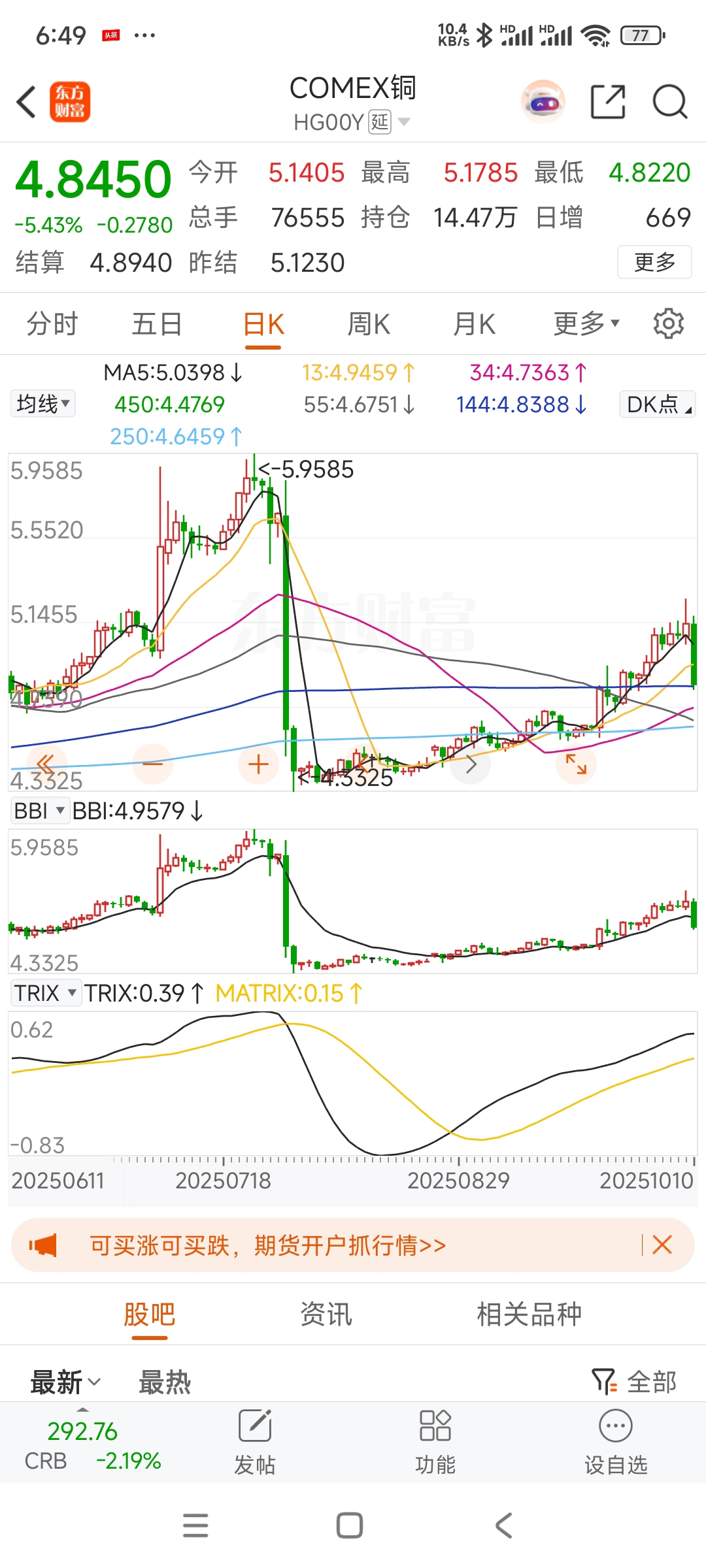 铜爆跌啊