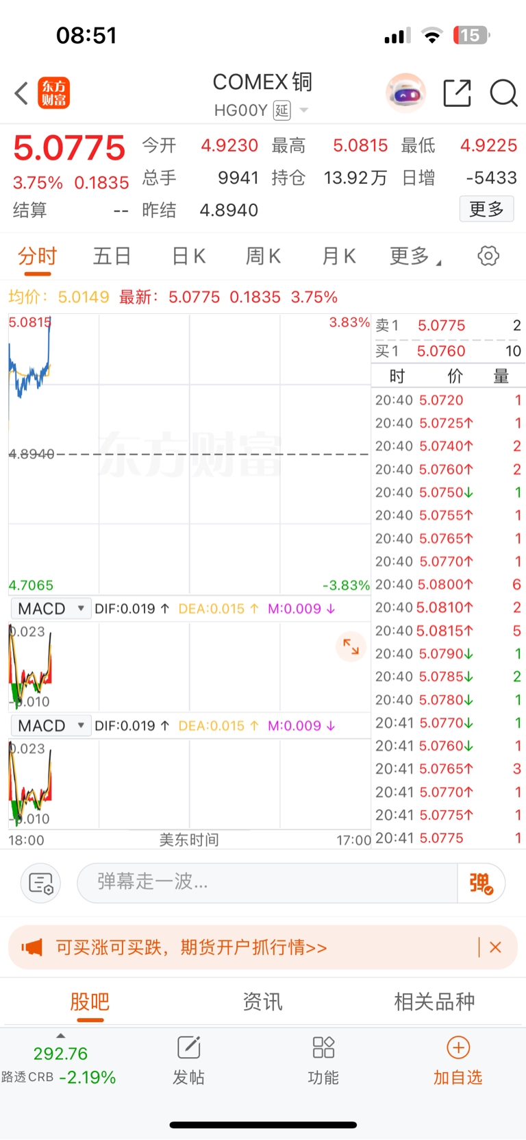 $*ST正平(SH603843)$ 昨天说铜跌的你出来走一走,正平顺周期