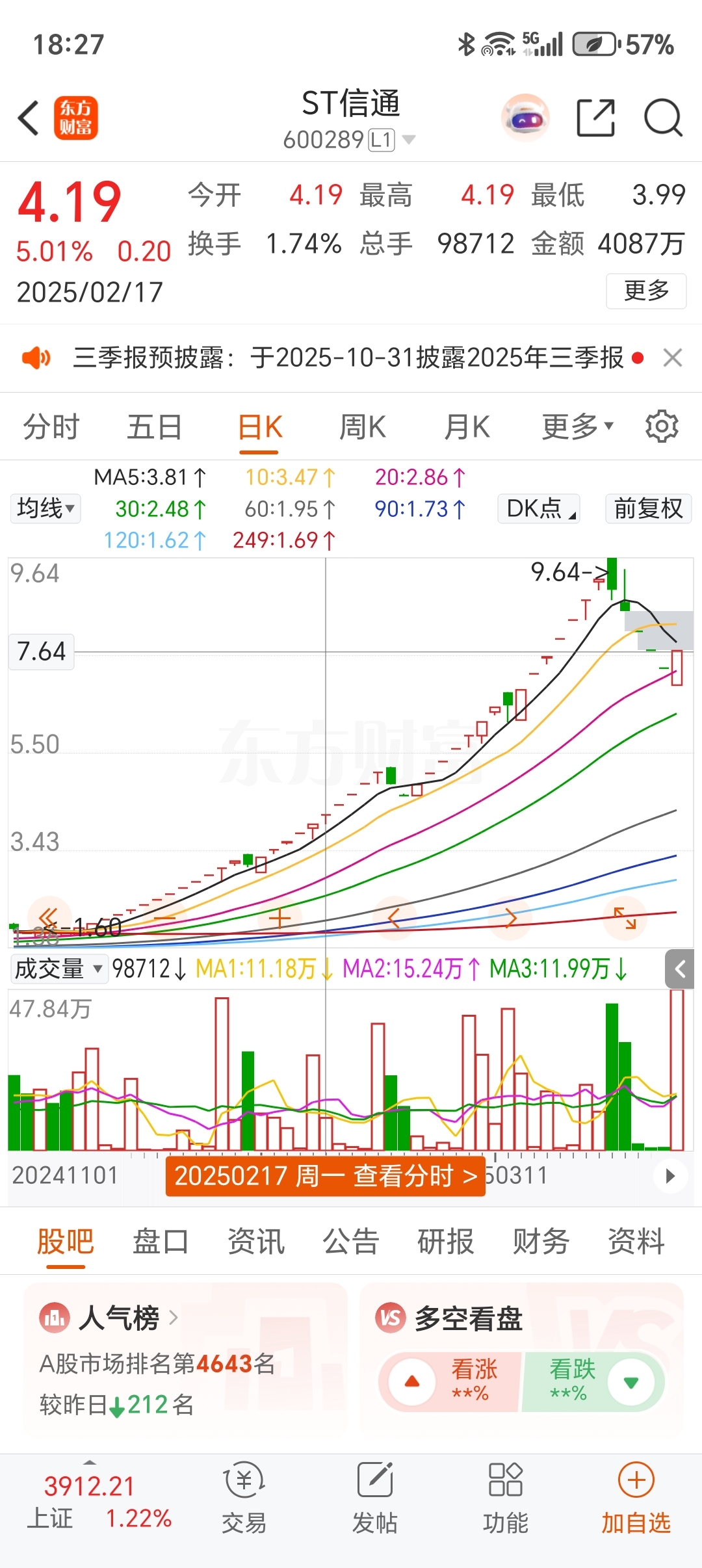 $*ST正平(SH603843)$ 按往年上交所个股的路子,第二次停牌核查是在5个涨停之后。也就是满足25个点的涨幅。不到不会停。也可以参考信通2月17日停牌。出来之后的走势。信通只停牌过这一次