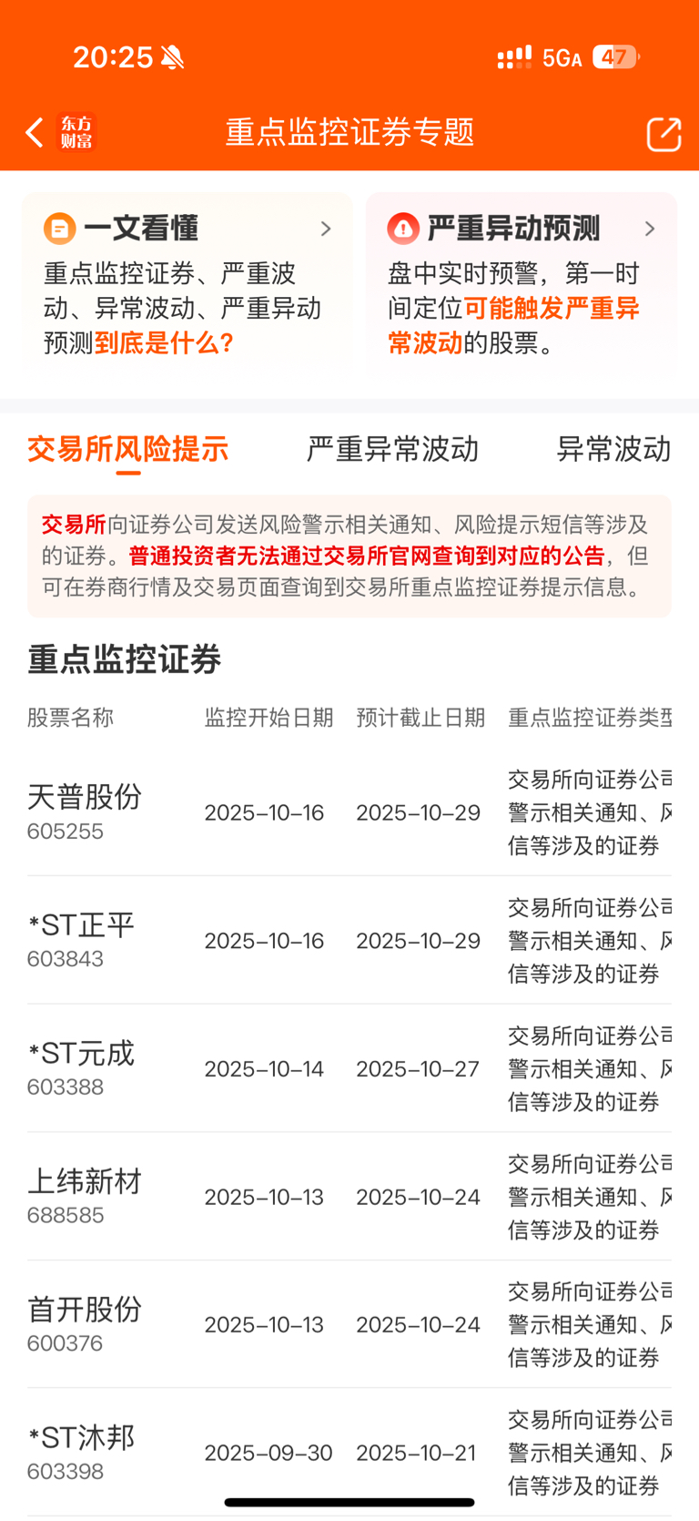 $*ST正平(SH603843)$ 我看了,对正平的新一轮重点监控确实是明天开始,10月16~10月29日(看截图)。看来上面铁了心不准涨了,毕竟9月份的涨幅超过100%。各位利润50~100个点的股东,全体调仓来聆达新龙头吧(截图2)两市唯一的半导体借壳上市,创业板的票就是好,一天涨8~20个点都稳稳当当。合力抱团新龙头,聆大,值得。