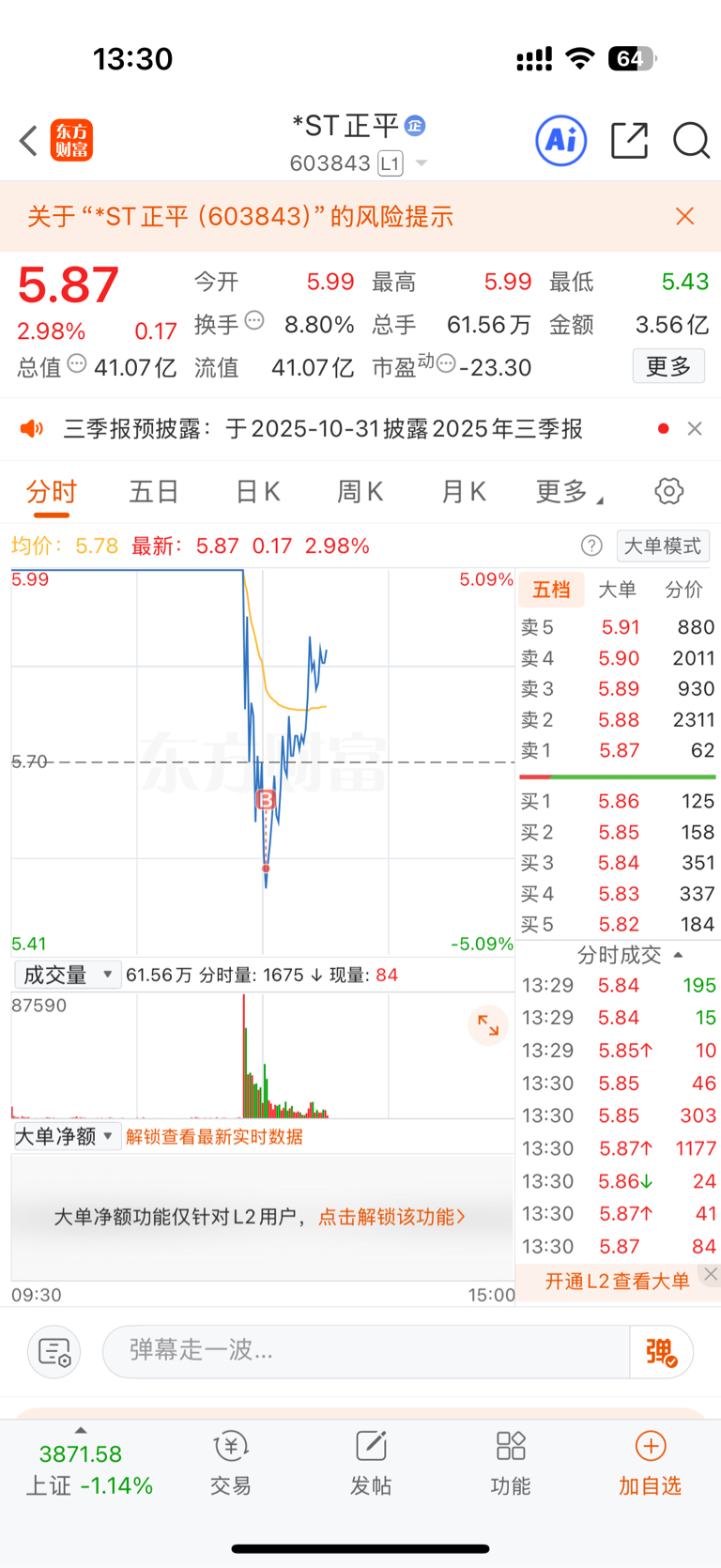 $*ST正平(SH603843)$ 上车了 兄弟们