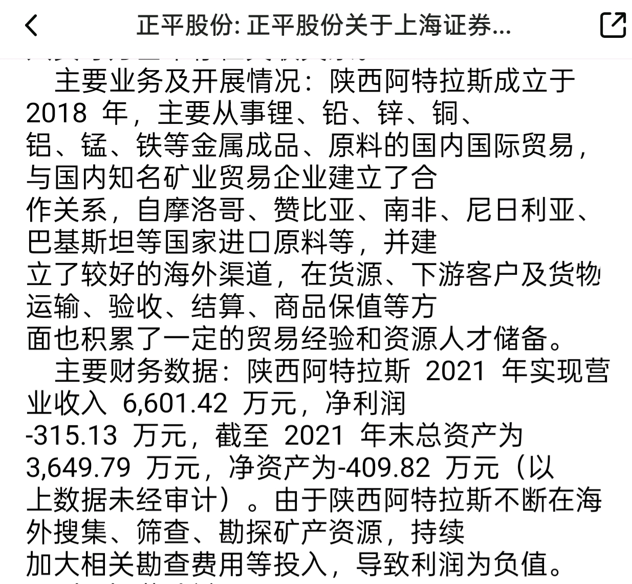正平的合资公司陕西阿特拉斯也是正常有业务的,这个不是空壳!主要是搞海外矿区的所以