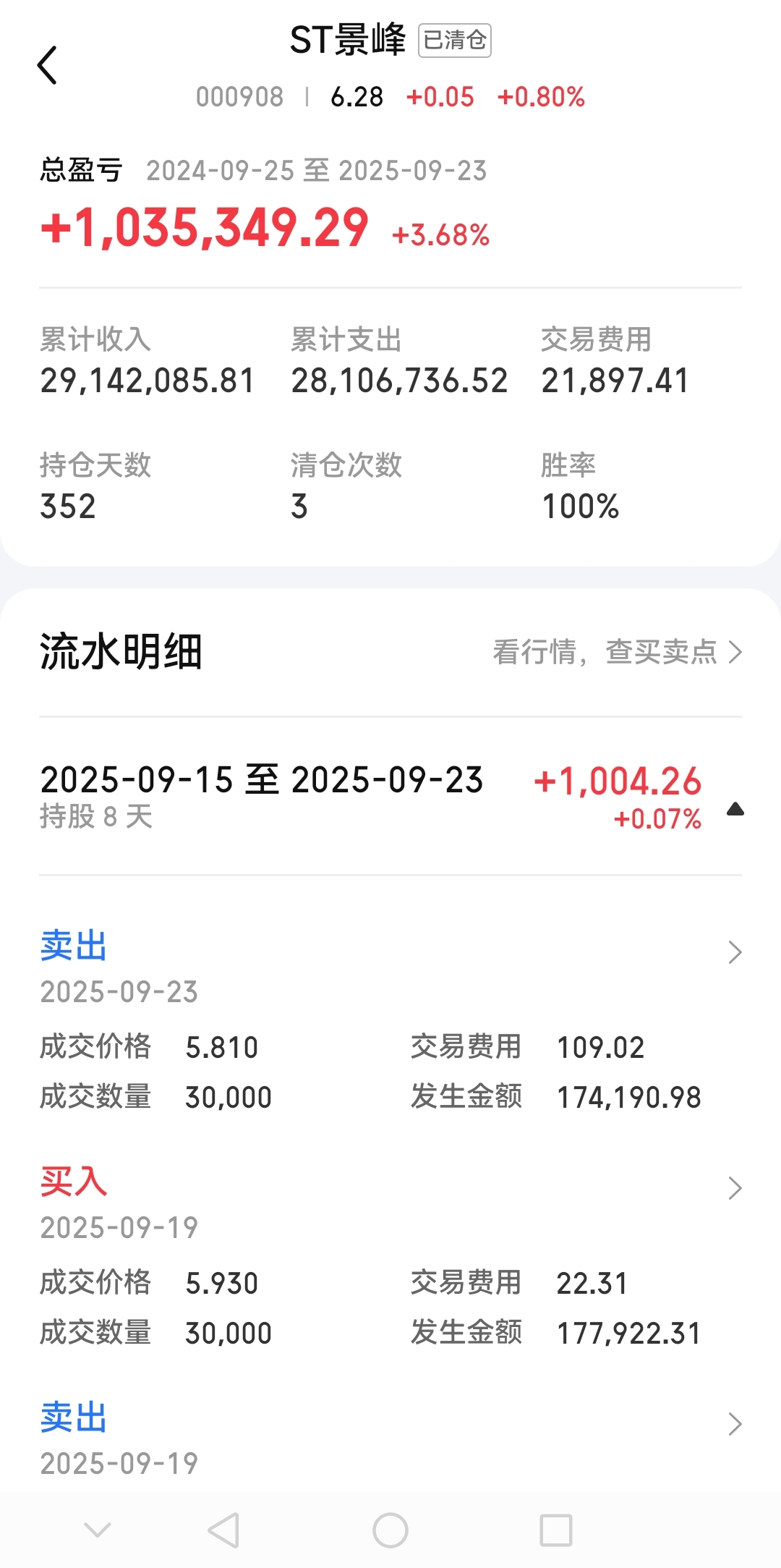 $*ST正平(SH603843)$ $ST景峰(SZ000908)$ 去年九月份开始操作景峰,全仓一个股,今年七月和八月大盘疯涨,景峰反而亏了几个点,后逐步减仓景峰加仓正平,最近景峰重拾升势,估计是赶不上了,等正平达到目标值后再来做景峰的摘帽行情