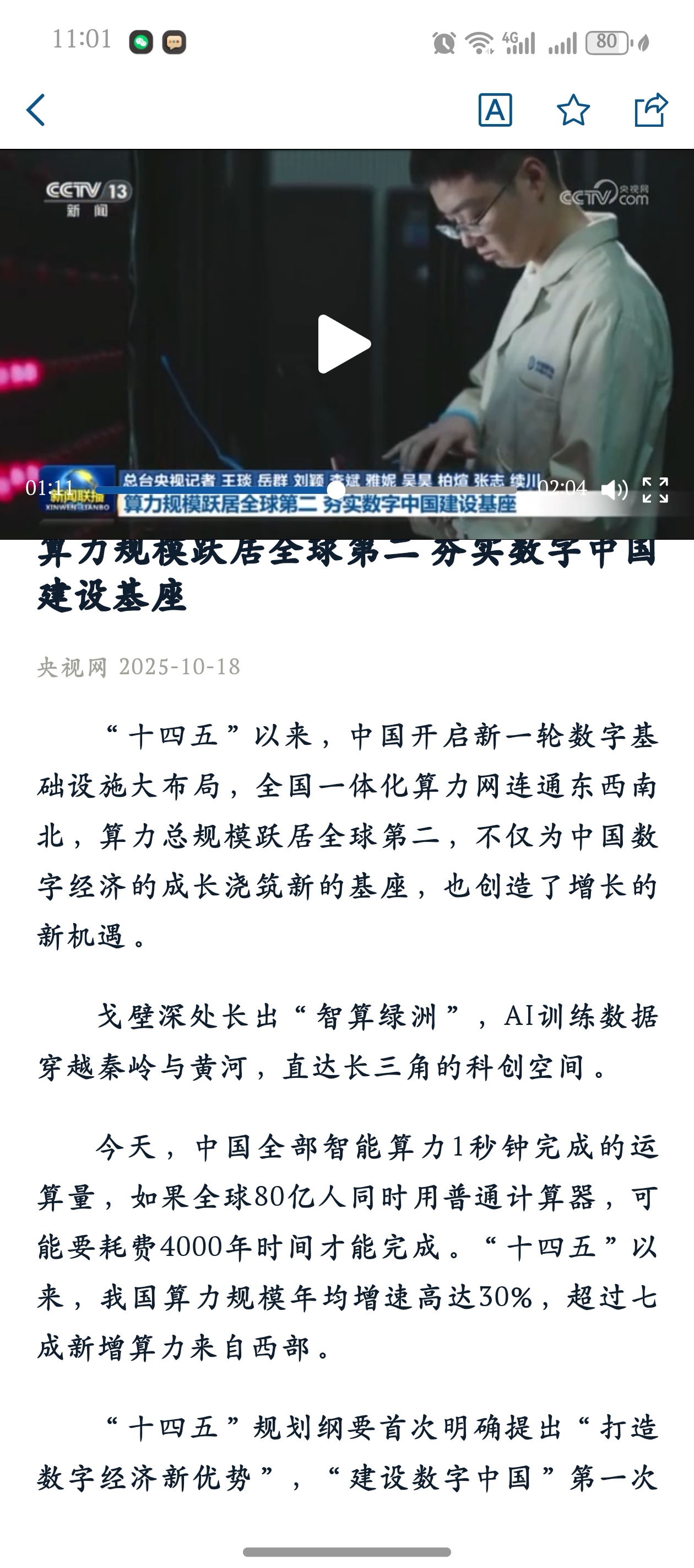 东数西算隔三差五上新闻联播,再来截个十八号的图来打打气