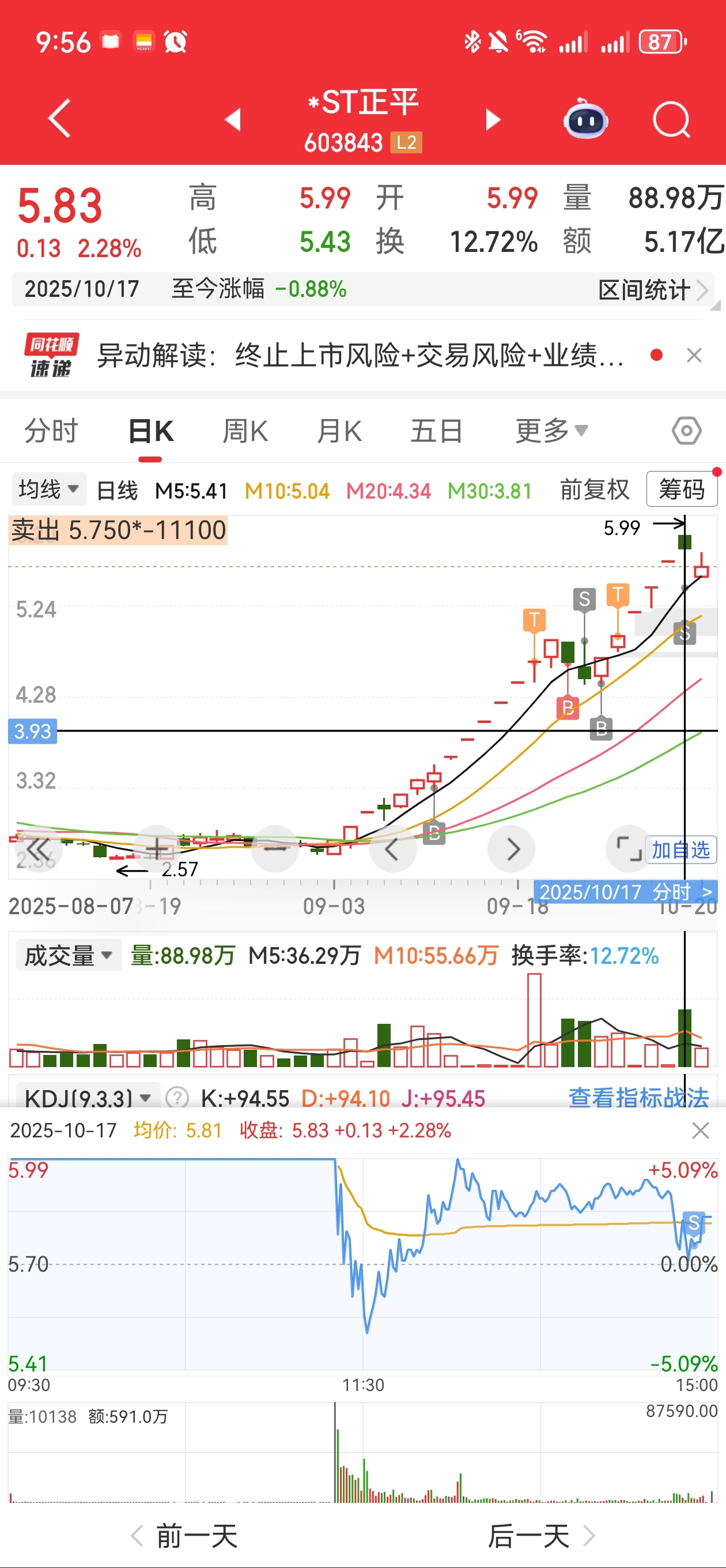 $*ST正平(SH603843)$ 等待机会